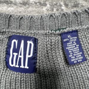 Vintage GAP Cable Knit V Neck Sweater Mens XL Gray Cricket Tennis Preppy 90s