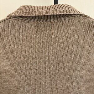 Good used condition, one light mark on sleeve and small factory flaw in knit on front (both pictured).