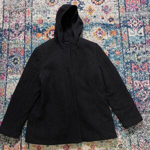 Vintage GAP Dark Gray Wool Blend Hooded Jacket Full Zip Women's XL Y2K