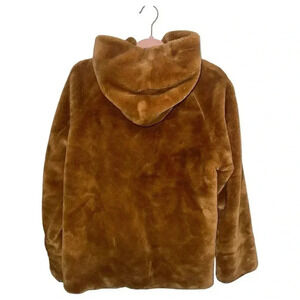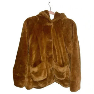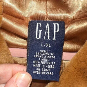 Vintage GAP Faux Fur Hooded Coat L/XL - Camel Brown Button-Up Jacket