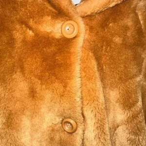 Stay cozy and stylish with this vintage GAP faux fur hooded coat in a classic camel brown shade. This timeless piece is perfect for adding a touch of elegance and warmth to your winter wardrobe.