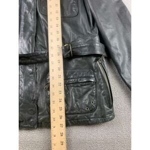 Vintage GAP Leather Jacket Women XL Black Utility Biker Safari Belted Pockets