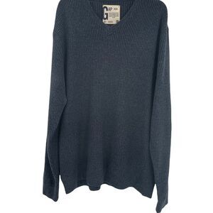 Vintage GAP Ribbed Knit Sweater Mens XXL Navy V Neck Cotton Nylon Wool