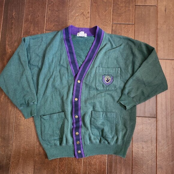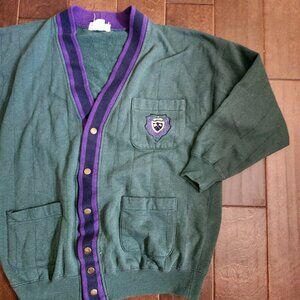 Vintage GAP Sport Green/Purple Academy Cardigan USA School Buttons - Size Small