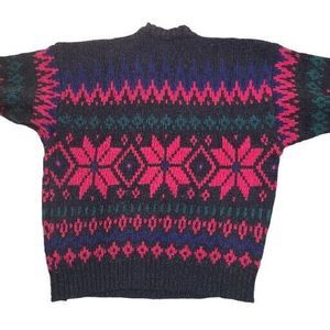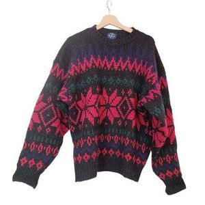 Vintage GAP Sweater Mens Blue Red Green Fair Isle Snowflake 100% Wool Large