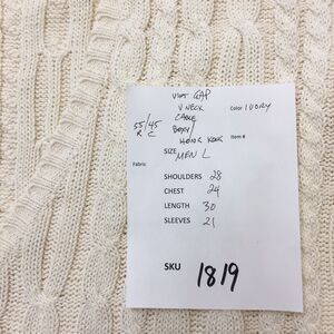 * Vintage GAP Sweater Men's L Ivory Cable Knit V Neck Heavy Boxy Hong Kong Aran
