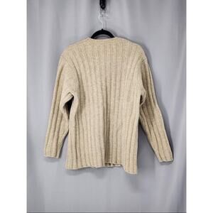Vintage GAP Sweater Mens Large Beige Cable Knit 100% Lambswool Chunky Fisherman