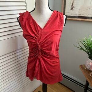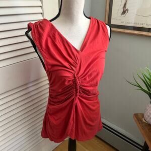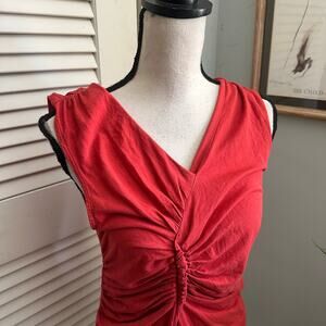 Vintage GAP Top Large Rust Red Sleeveless Ruched V-Neck Retro Y2K Casual