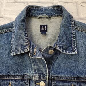 Vintage GAP True Y2k Denim Trucker Jacket Weathered Blue 100% Cotton size Large