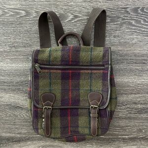 Vintage GAP Wool Blend Green Tartan Plaid Flap Double Buckle Mini Backpack