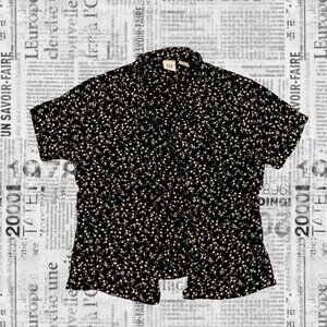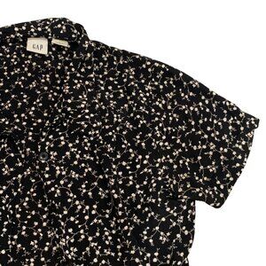 Looks cute open and layered or buttoned and tucked into jeans. Tagged size L, fits S-L depending on desired fit, in great used condition