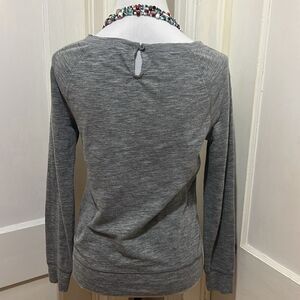 This vintage women's extra small shirt from GAP is Heather Gray. If features a scoop neck with keyhole detail behind, long sleeves, cut like a sweatshirt, but heavy T-shirt fabric super cute universal piece!