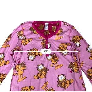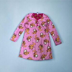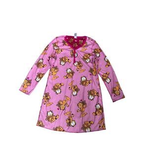 Vintage GARFIELD Sleepwear Reversible Polyester Size 8/10 Pink/Red Nightgown