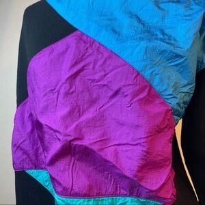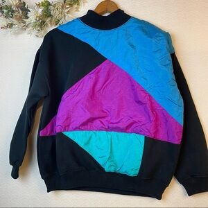 RETRO RAD GEM Coloblock Pullover Sweatshirt Circa 80s/90s Mock Turleneck. Unisex Size XL. Parachute type material in color block pattern on front. Awesome vintage condition from a smoke free home!!