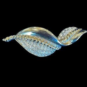 Vintage GEM CRAFT Brooch Pin Mid Century Rhinestones Extra Large Curved Leaf