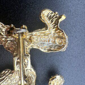 Vintage GERRYS Gold Tone Poodle Brooch With Green Enameled Details Mid-Century P