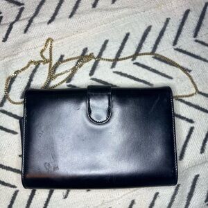 Vintage GG Gucci Vintage Black Leather Clutch Purse Convertible Gold Strap Chain