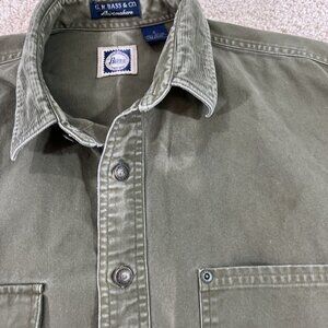 Vintage G.H. Bass & Co Mens Shirt S Denim Button Front Green Hunting Outdoors