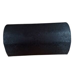 This vintage storage box, measuring 13 inches long, 7 inches high, and 4.5 inches deep, features a luxurious midnight black brocade exterior that exudes elegance and sophistication. The box is adorned with gold-tone corners that add a touch of glamour, and it is secured with a beautifully designed decorative closure. Ideal for storing cigarettes, wigs, or other precious items, this box combines functionality with a classic aesthetic, making it a perfect addition to any vintage collection or as a stylish decorative piece.