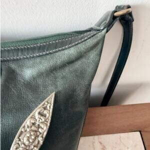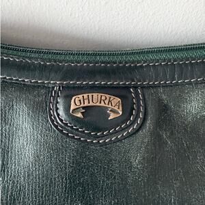 Vintage GHURKA Leather Crossbody Bag Dark Green Small Bucket Tote Equestrian