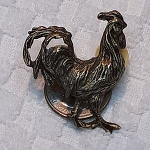Vintage GIANT Rooster Chicken metal double lapel pin Gold/Brass-Tone Animal