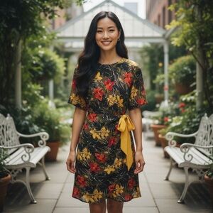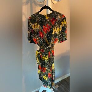 Vintage GILLIAN 100% SILK Floral Abstract Faux Wrap Dress | Size 6