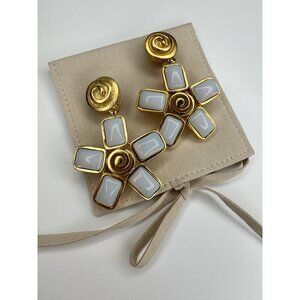 Vintage GIVENCHY Opal Lucite Golden Earrings Clip on Oversized