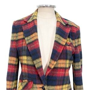 Vintage G.J. Forbes Tartan Plaid Faux Fur Blazer Jacket Size Small