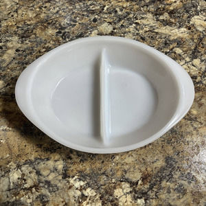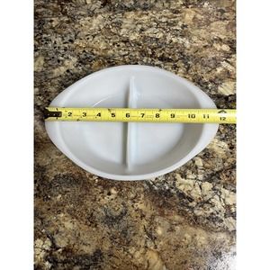 Vintage GLASBAKE J2352 Solid White Milk Glass Oval Divided Serving Dish Bowl