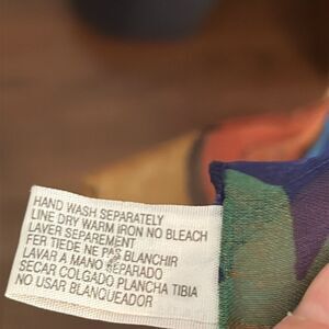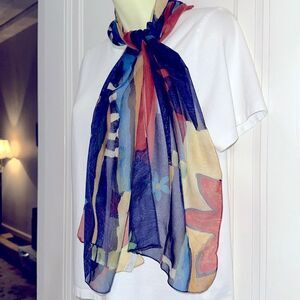 Vintage GMA Accessories multi color(light blue,orange, green, yellow & purple) & multi pattern semi sheer polyester long scarf