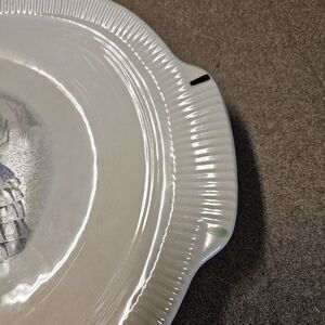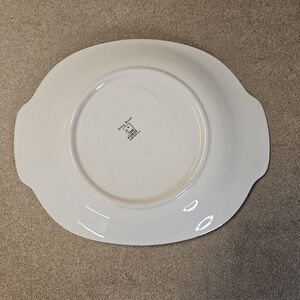 The plate was produced using art pottery techniques in the United States and features a printed backstamp. Its production style is pottery, and it is a single serving platter. This plate is perfect for serving your guests in style and will surely impress anyone who sees it.