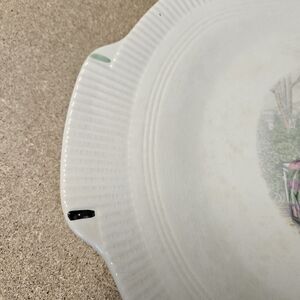 This vintage serving platter from Victory Salem China CO is a beautiful addition to any collection. The round plate measures 12x9.5 inches and features a stunning Godey pattern in multicolor. Perfect for all occasions, this ceramic plate is a must-have for any Victorian-themed dinner party.