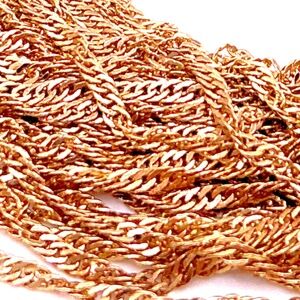This vintage GOLD TONE Multi Strand Chain Necklace is a stylish accessory for women, measuring 16 inches in length. The lobster closure ensures a secure fit, while the gold color adds a touch of elegance. With its classic chain style and lack of a main stone, this necklace is versatile and easy to wear with any outfit. Perfect for adding a trendy and timeless look to your ensemble.