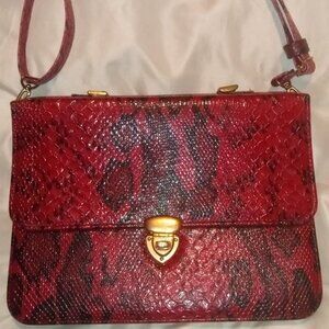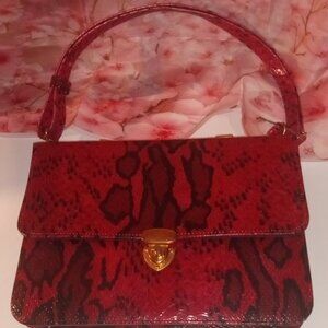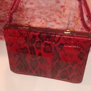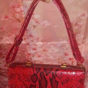 Vintage GOOD QUALITY Red Snakeskin SLIM Handbag w/ Adjustable Shoulder Strap