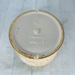 A speckled tan/beige with horizontal throwing rings—is very typical of 1970s Canadian studio-inspired stoneware.