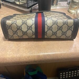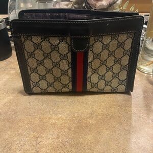 Vintage GUCCI Clutch Bag Sherry Line GG Pouch Navy Leather