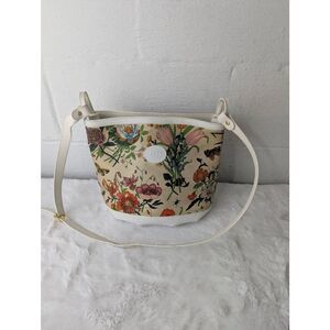 Vintage GUCCI Flora Shoulder Bag Floral CanvasWhite Leather 70's - 80's
