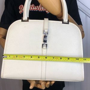 Vintage GUCCI Ivory Leather Satchel Standing Jackie Silver Buckle Hand Bag MINT CONDITION