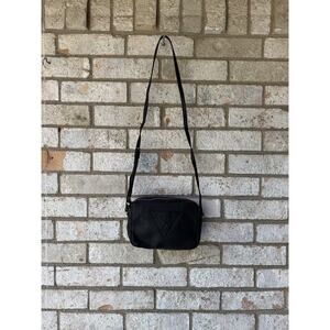 Vintage GUESS Black Leather Crossbody Bag Purse Messenger Silver Tone Hardware