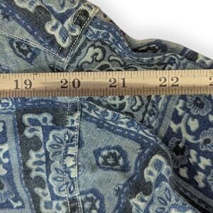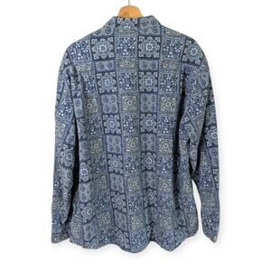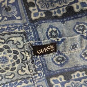 Vintage GUESS USA Denim Shirt 80s 90s ~ Tile print long sleeve snap front