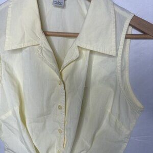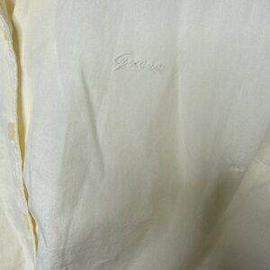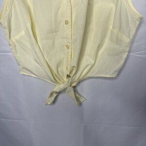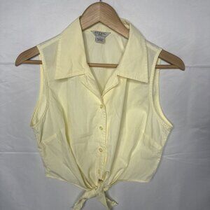 Vintage GUESS button up front tie crop top Sz L Yellow 80's Shirt