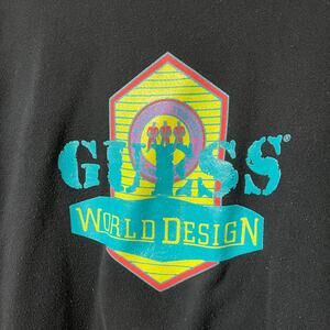 Step back into peak 90s style with this authentic vintage GUESS by Georges Marciano sweatshirt. Made in the USA and featuring a bold, colorful “GUESS World Design” graphic, this piece is a true throwback collectible for Guess fans and retro lovers.