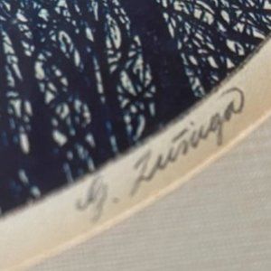 A VINTAGE (bought this about 45 years ago) SIGNED print from GUILLERMO ZUNIGA. He's an artist, born in Peru and then emigrated to California. Renowned for his watercolors, photography and pencil prints. I don't remember if this was a print of one of his photographs or one of his watercolors ~ but the signature is in pencil on the bottom right of the inside mat. (There's an interesting website for him ~ just google. He's still living and doing shows. You can even contact him!)