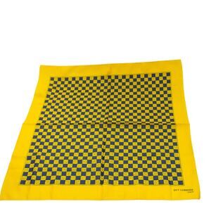Vintage GUY LAROCHE PARIS Blue Yellow Checked 23" X 23" Polyester Scarf