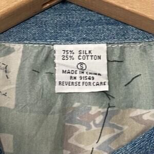 Vintage GX Size Small Silk Denim Button Up Shirt Country Western 80s Cowgirl