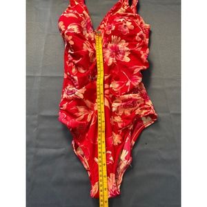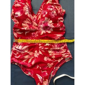 Vintage Gabar One Piece Swimsuit Red/Pink Floral with Gold Accent Pre-owned