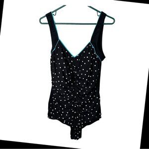 Vintage Gabar polka dot one piece swimsuit size 18 black & white teal blue