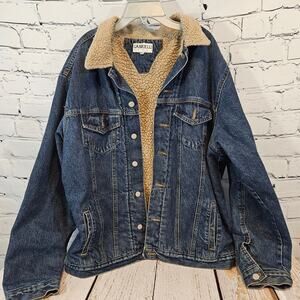Vintage Gabrielli Jeans Men’s 38 Sherpa Lined Denim Trucker Jacket Crest Buttons