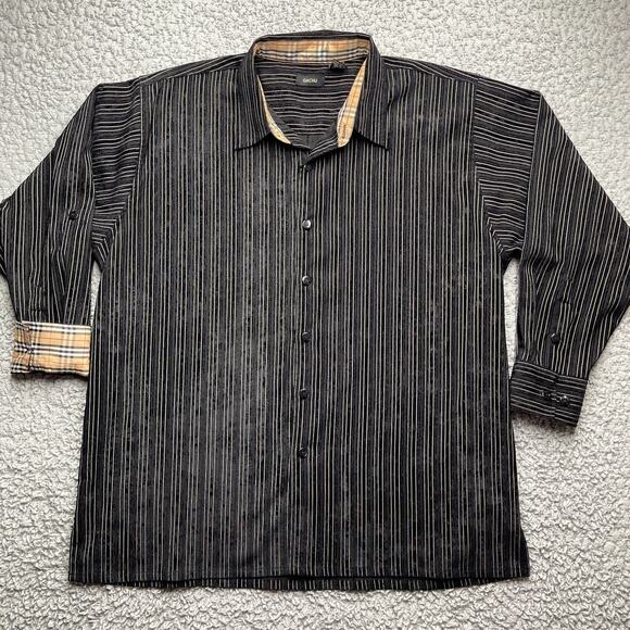 Vintage Gachu Button Up Shirt Mens 2XL Black Corduroy Textured Plaid Long Sleeve