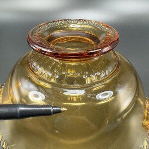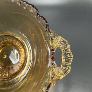 Vintage Gadroon Edges Amber Glass Footed Dish Bowl Container With Handles VTG